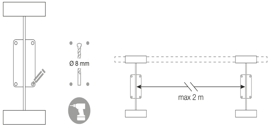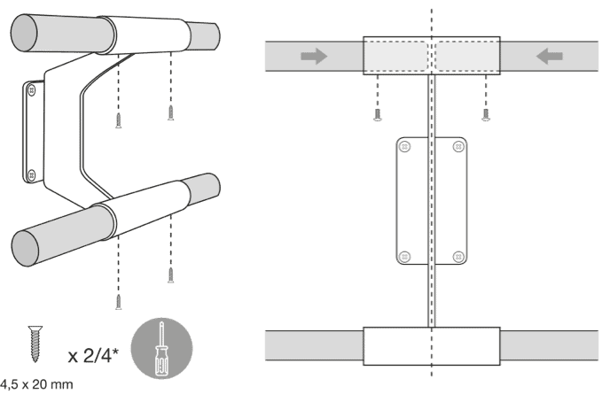 Los soportes de la Arabesque están diseñados para unir dos barras de madera en su interior. Esto te permitirá montar una barra continua en el estudio sin ningún hueco y manteniendo total estabilidad en todos los puntos. La distancia máxima recomendada entre soportes es de 2 metros.